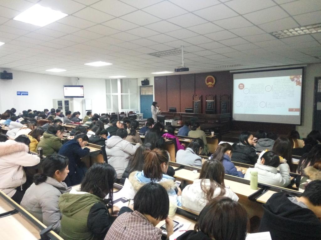 (通讯员 任立轩)12月29日上午,河南倚天剑律师事务所邵玉娟律师应邀来yl6809永利官网集团作了题为《从保姆纵火案律师退庭看刑事诉讼管辖权异议制度》的报告。报告会在我院多功能模拟法庭举行,院党总支副书记张强、法学教研室于淑杰、肖潇老师以及yl6809永利官网集团大三、大四学生共计200余人聆听了报告会。会议由张强副书记主持。