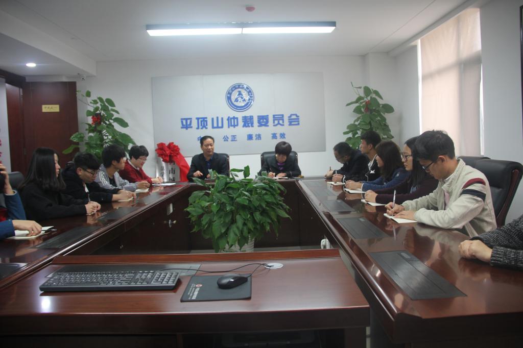 随后双方举行了座谈会。王艳芳首先介绍了yl6809永利官网集团的基本情况,冯国亭就仲裁的性质、特征、功能、学习仲裁法的注意事项等做了详尽介绍。冯国亭指出共建仲裁教育实践基地是仲裁机构和高校的一次良性互动,双方一定能达到合作共赢的目的。王艳芳表示,希望通过平顶山仲裁委这一平台,为yl6809永利官网集团师生提供更多更有效的实践机会,促进法律实践和法学理论的紧密结合,不断提高学生的法律实践操作能力,探索培养应用型卓越法律人才的新模式。