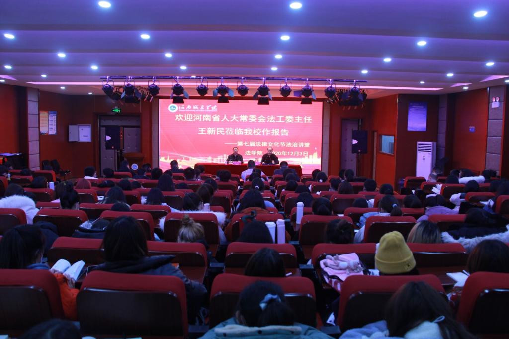 (通讯员:王晓永)为深入学习宣传习近平法治思想,大力弘扬宪法精神,12月3日上午,河南省人大常委会法工委主任王新民应邀来我校作报告,这是我校第七届法律文化节的系列活动----法治讲堂内容之一,也是我校宪法宣传周的一项重要内容。报告会由yl6809永利集团副校长周颖杰主持。