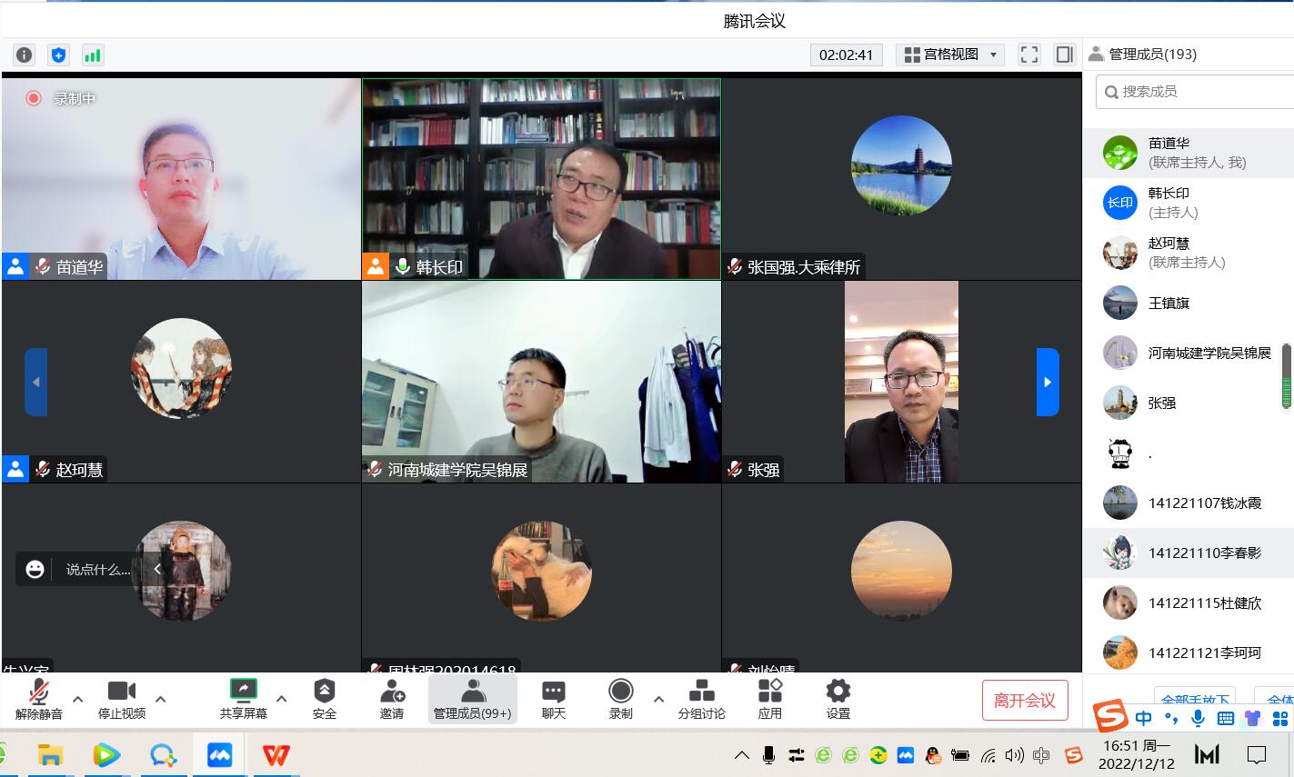 (通讯员:赵珂慧)12月12日下午,我校客座教授、上海交通大学凯原yl6809永利官网集团教授、博士生导师韩长印应邀线上做学术报告。平顶山市律师协会会长张国强、平顶山市中级人民法院破产庭庭长桓旭、yl6809永利官网集团党委书记苗道华、副院长张强、副书记吴锦展及学院师生与办理破产案件的法官、律师共计200余人线上、线下聆听了报告。报告会由张强主持。