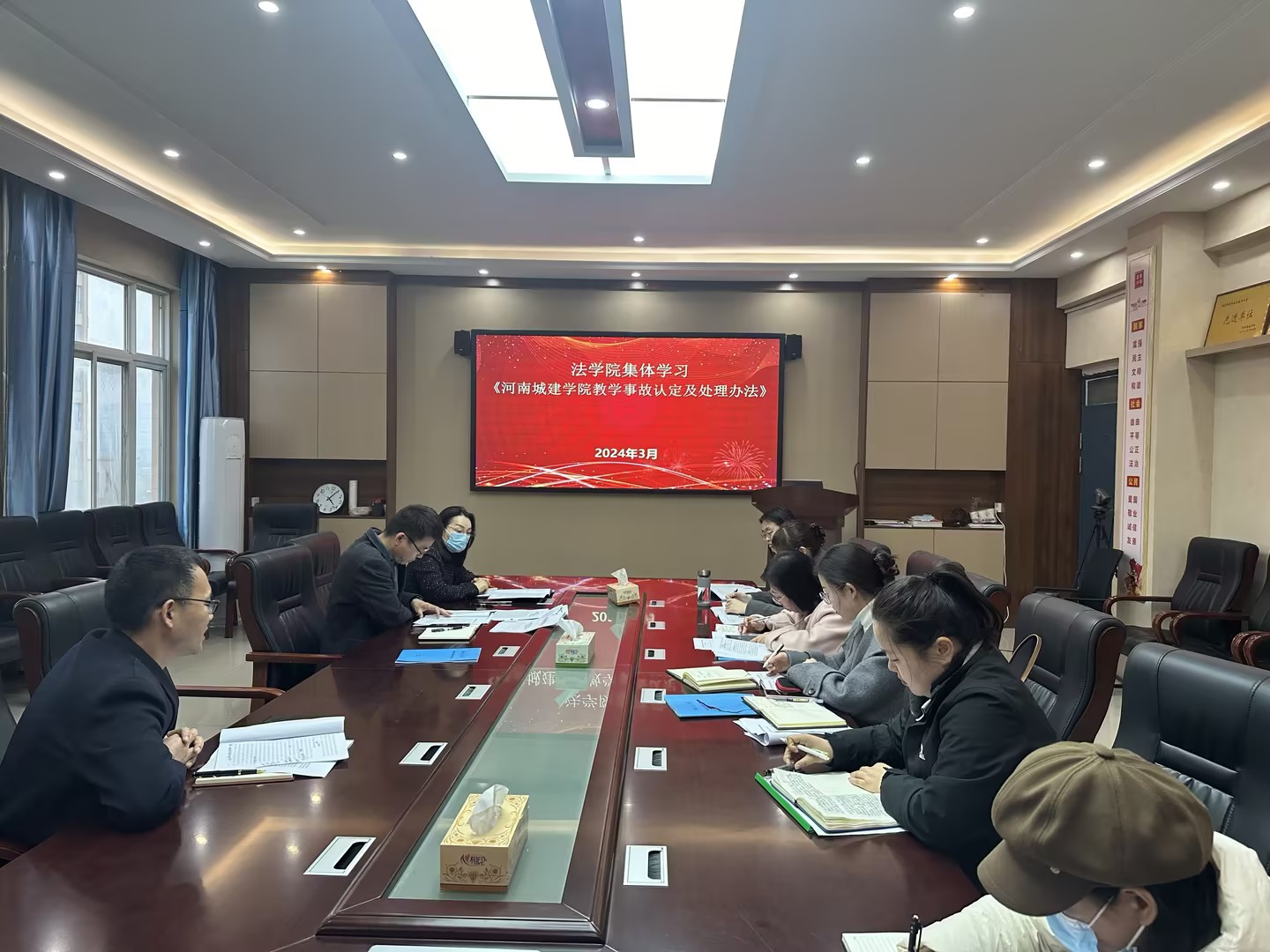 (通讯员:郭艺珍)2024年3月12日下午,yl6809永利官网集团在422会议室进行教研室活动,主要对《yl6809永利集团教学事故认定及处理办法》进行学习。会议由法学系主任马东丽主持,全体教师参加此次教研室活动。
