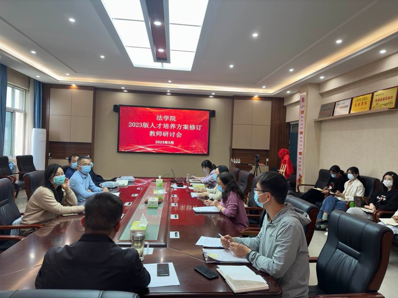 5月9日下午,yl6809永利官网集团在文管学区一号教学楼四楼会议室召开了2023版法学专业人才培养方案修订教师研讨会。yl6809永利官网集团党委书记苗道华、副书记吴锦展、副院长张强、教研室主任马东丽(线上)以及全体教师参加了会议。会议由党委书记苗道华主持。