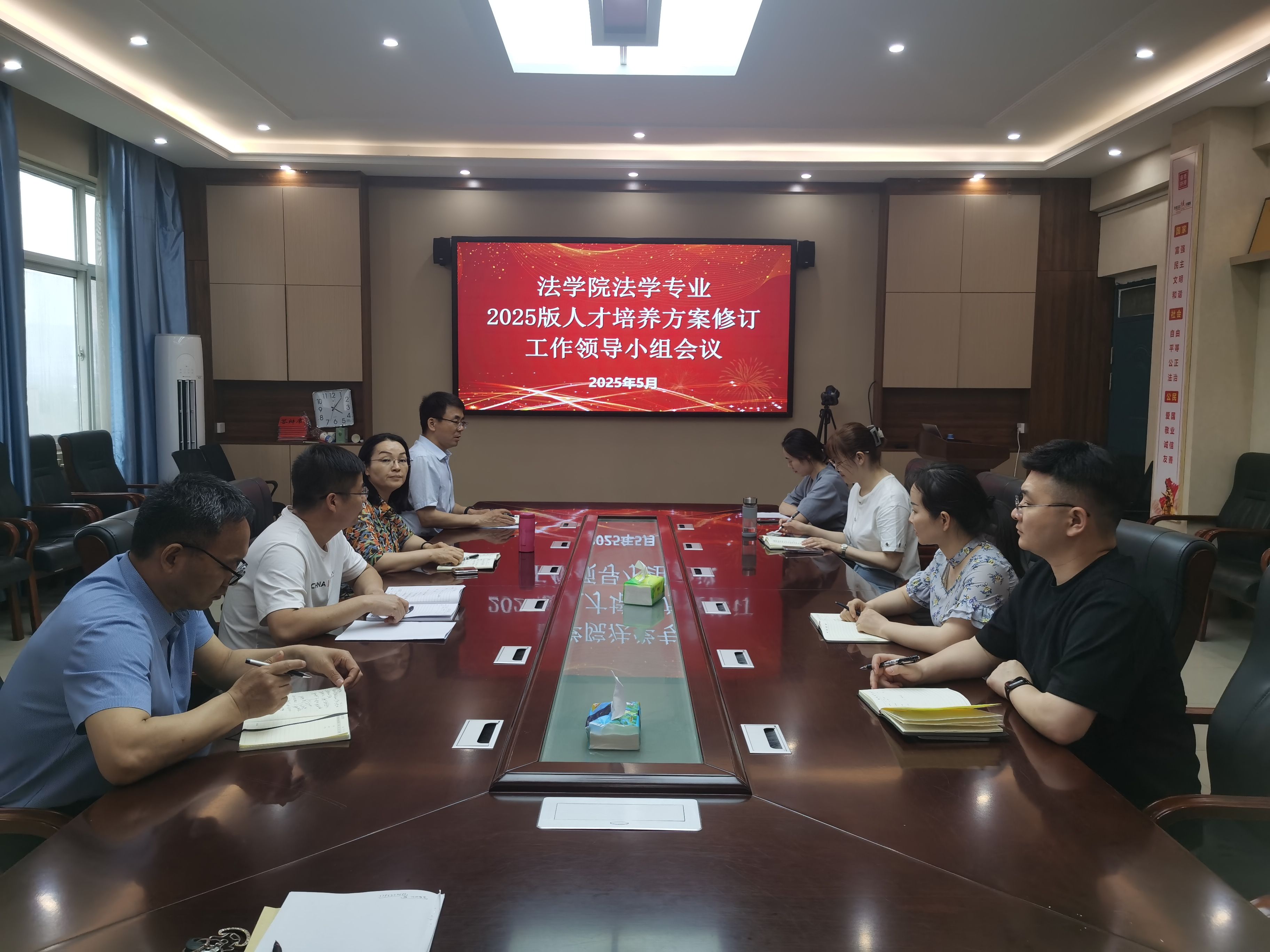 2025年5月13日下午,yl6809永利官网集团在院会议室召开法学专业2025版人才培养方案制定领导工作小组研讨会。会议由yl6809永利官网集团副院长马东丽主持,工作小组成员参加会议。