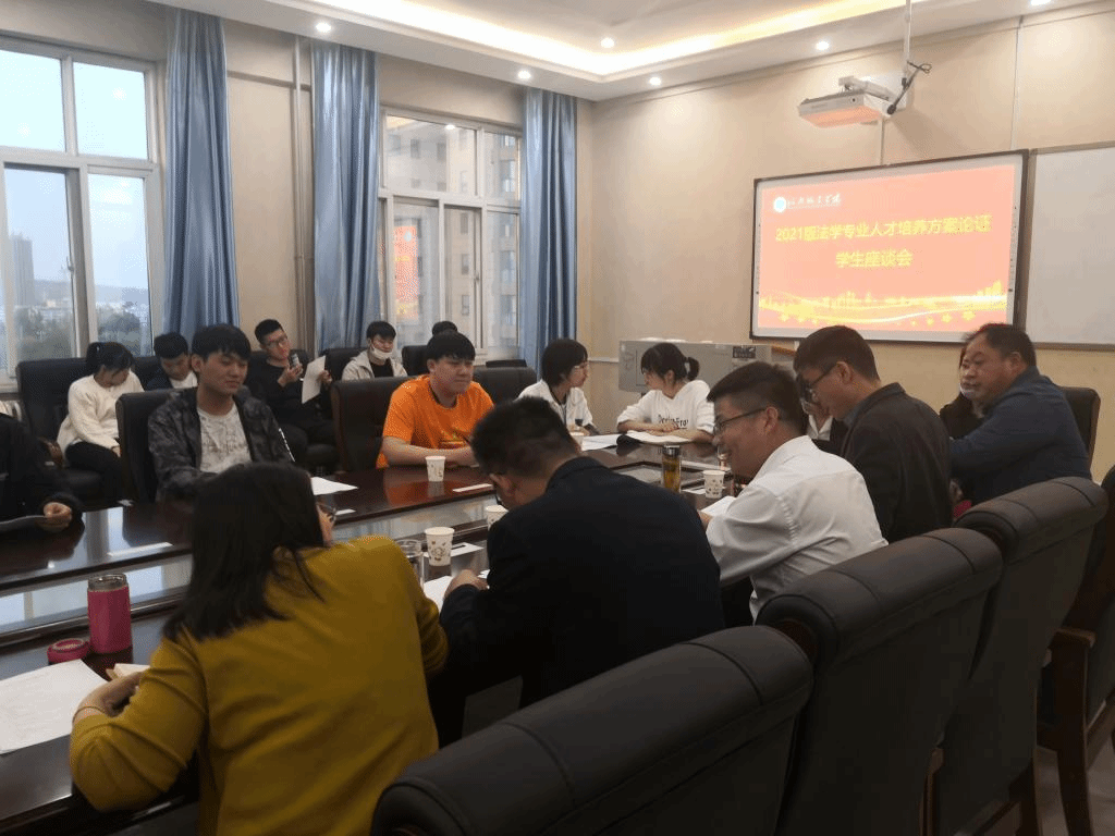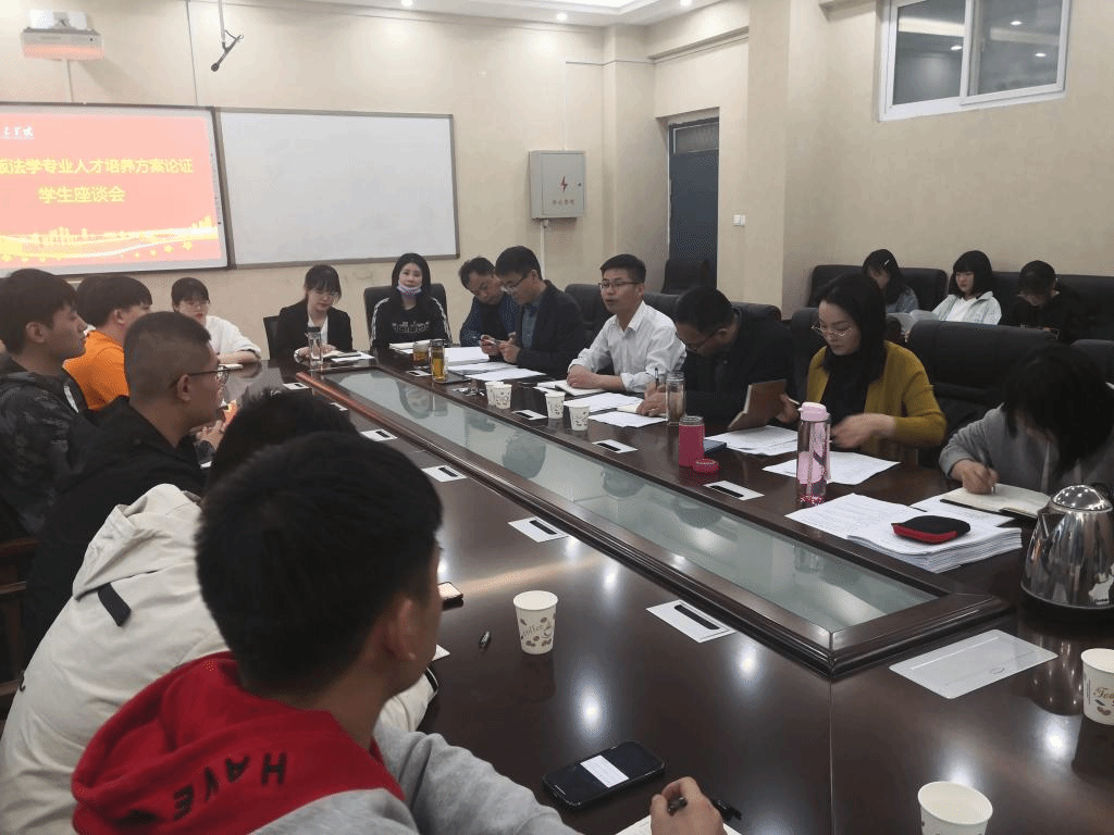 (通讯员:郭艺珍)4月29日晚上六点,yl6809永利官网集团在和谐学区一号教学楼422会议室召开2021版法学专业人才培养方案修订师生座谈会,分别对法学本科、专升本人才培养方案进行论证研讨。yl6809永利官网集团党委书记苗道华、副院长张强、副书记吴锦展、法律系主任马东丽以及骨干教师、教师代表、学生代表参加了会议。会议由马东丽主任主持。