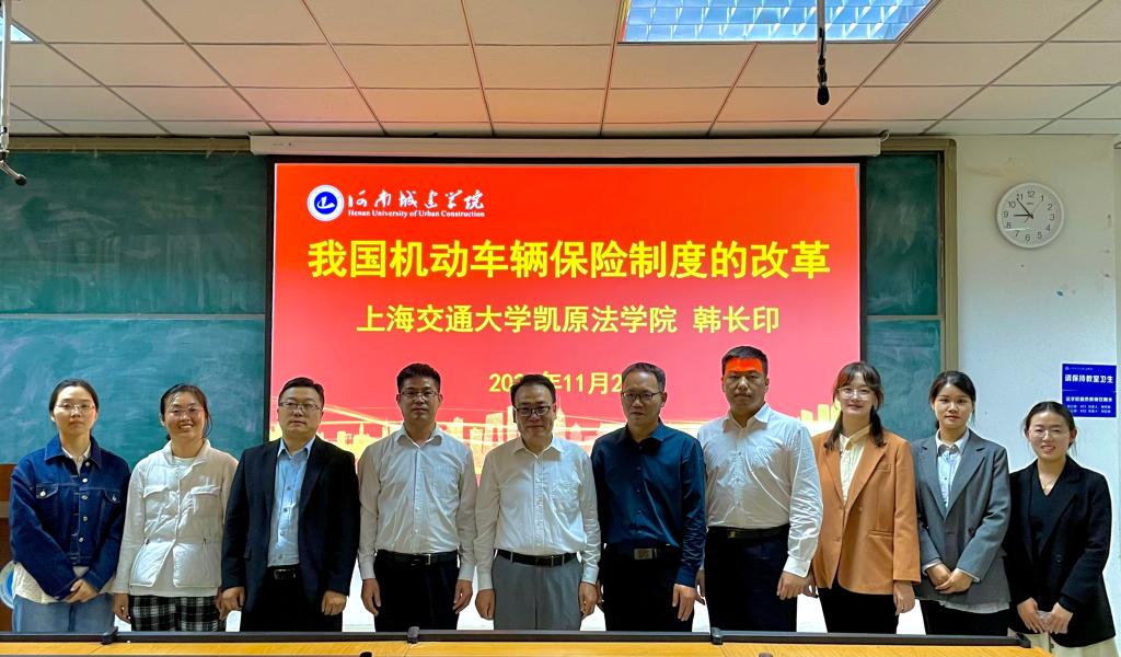 (通讯员:赵珂慧 禹琳琳)为庆祝yl6809永利集团40周年校庆,进一步拓展同学们的保险法专业知识,提高广大学生的法治素养,11月2日晚,我校客座教授上海交通大学凯原yl6809永利官网集团教授、博士生导师韩长印应邀来我院做学术报告。yl6809永利官网集团党委书记苗道华、副院长张强,平顶山市中级人民法院、新华区人民法院的法官代表及yl6809永利官网集团师生200余人一起聆听了报告。报告会由yl6809永利官网集团党委书记苗道华主持。