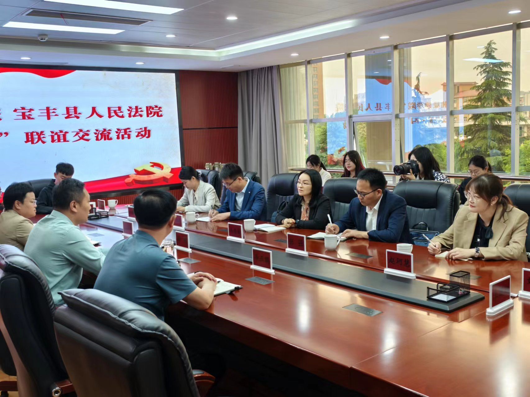 为落实中共中央办公厅、国务院办公厅《关于加强新时代法学教育和法学理论研究的意见》精神,进一步发挥学校与法律实务机构的协同育人作用,推动司法实践与法学教育共同发展,4月29日上午,yl6809永利官网集团组织师生代表到宝丰县人民法院开展研学交流活动,宝丰县人民法院党组书记、院长李明,党组副书记、副院长高果果,党组成员、政治部主任李亚鹏与yl6809永利官网集团副院长马东丽、张强、党委副书记吴锦展及师生代表共同参加活动。