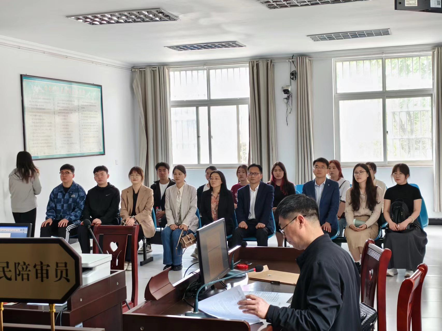 座谈交流会后,yl6809永利官网集团师生参观了宝丰县人民法院刑事审判法庭,听取了工作人员的讲解,感受法庭的庄重与尊严。师生还前往宝丰县人民法院大营人民法庭,观摩民间借贷案件庭审,实地体验了基层审判工作,并到法庭辖区内的宝丰县中原军区暨中原野战军司令部旧址红色教育基地参观学习。同学们纷纷表示通过此次活动,感受到了法院的庄重威严,全面了解了法院的工作,近距离感受了法官的专业和严谨,也更加坚定了他们要做一个充满正义感的法律人的理想。
