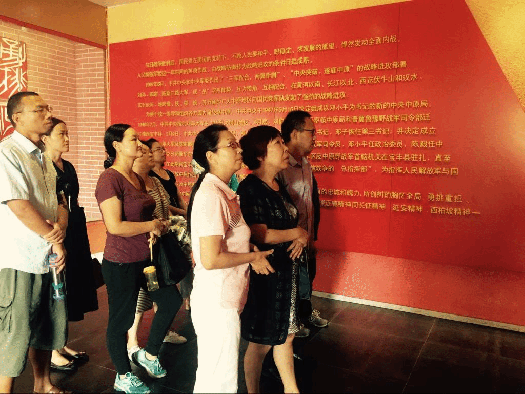 在王艳芳书记的带领下,大家一起走进宝丰中原解放纪念馆展厅,了解到解放战争时期,宝丰县曾是中共中央中原局和中原军区所在地。1948年,邓小平、刘伯承、陈毅等老一辈革命家曾在这里指挥了江汉、郑州等6场战役,并办起了中原大学、豫西行政干部学校,召开了著名的宝丰会议,为淮海战役决战做了充分准备。