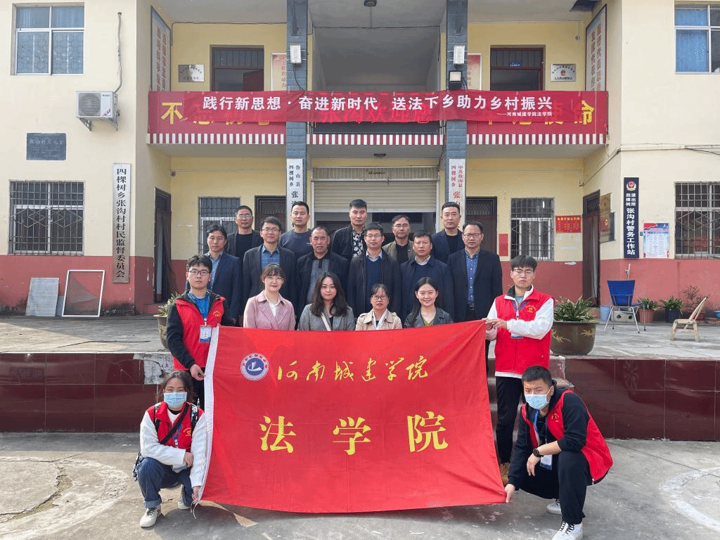 为深入开展“践行新思想·奋进新时代”——助力乡村振兴志愿服务活动,增强乡村群众法治意识、树立法治观念、助力乡村振兴,11月4日,由我校机关一、yl6809永利官网集团、马院三个分工会联合组成的乡村文化振兴志愿服务队赴鲁山县四棵树乡张沟村开展“送法下乡·助力乡村振兴”普法帮扶活动,四棵树乡武装部长、张沟村两委委员、我校驻村干部、yl6809永利官网集团师生和张沟村村民参加了此次活动。