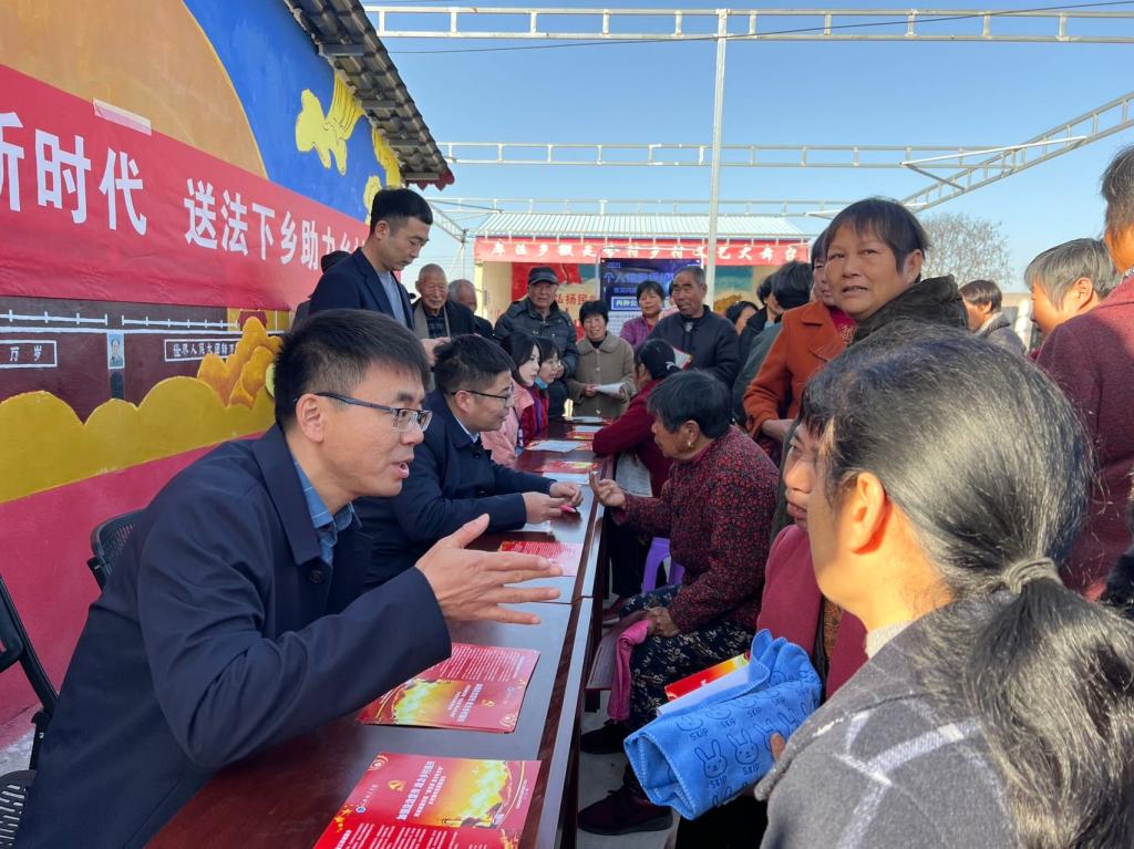 在普法宣讲会上,志愿服务队围绕农村土地流转、宅基地法规、婚姻家庭与继承、电信网络诈骗等问题进行了普法宣讲,对村干部、党员和村民在工作和生活中遇到的法律问题提供法律建议。