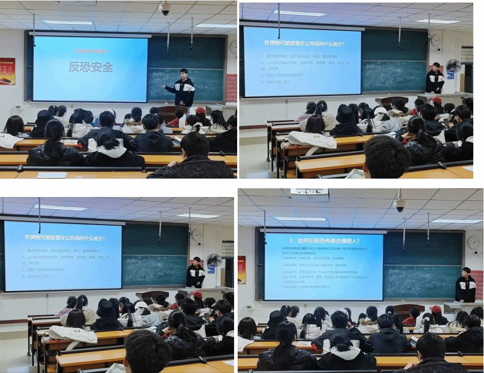 法律协会通过宣传版面、宣传横幅、主题班会等多种形式,向同学们介绍《中华人民共和国反恐怖主义法》及反恐相关法律基础知识,让学生们了解总体国家安全观及防范暴力恐怖袭击的重要意义、什么是恐怖主义、怎么防范恐怖主义袭击以及如何应对恐怖主义袭击等相关知识,并深入介绍暴恐活动的社会危害、特征及常用手段,详细讲解了当前反恐刑事的复杂性,呼吁广大同学“多一份警惕,多一分安全”,广泛参与、积极配合反恐怖工作,切实提高防范应对恐怖袭击的意识和能力,营造全民反恐的良好社会氛围。通过引导同学们加强自身防护意识、学习安全防范知识,做到能发现、能识别、能避险、会举报、会自救、会应对,呼吁广大师生要切实增强校园安全防范意识。