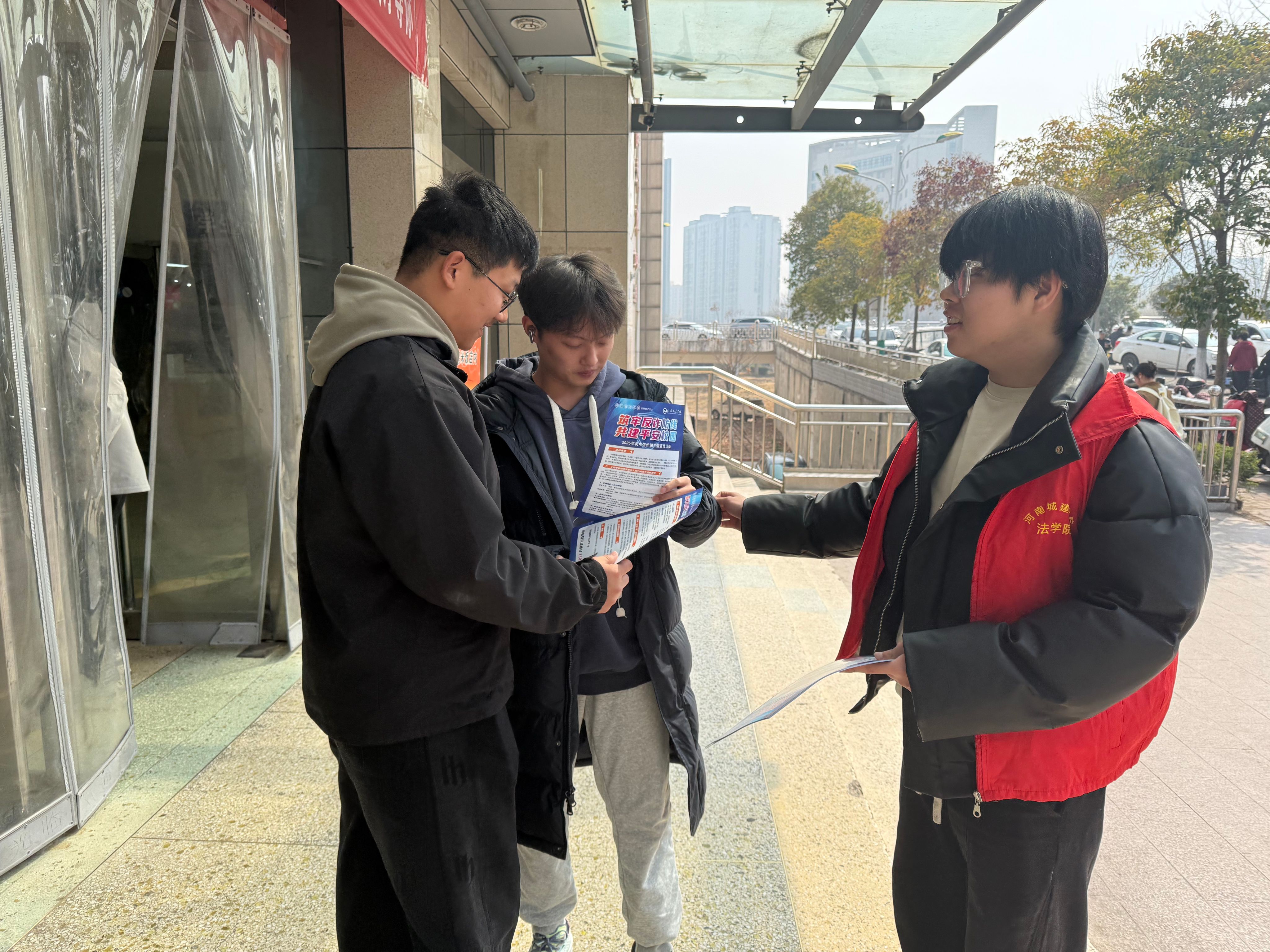 活动当日,法律协会成员在教学楼、食堂、图书馆等人流量较大的区域设立宣传点,向过往师生发放精心制作的反诈宣传传单。同时,协会成员在教学楼及宿舍楼前等显著位置张贴了醒目的反诈标语、放置宣传展板,营造出浓厚的反诈宣传氛围。