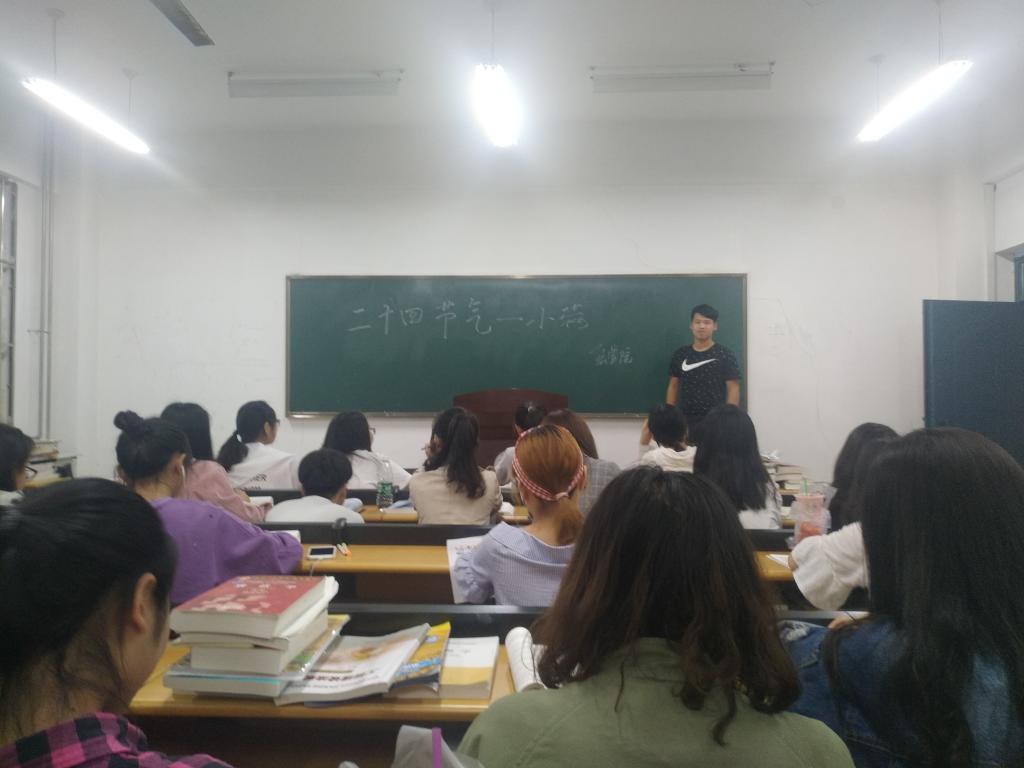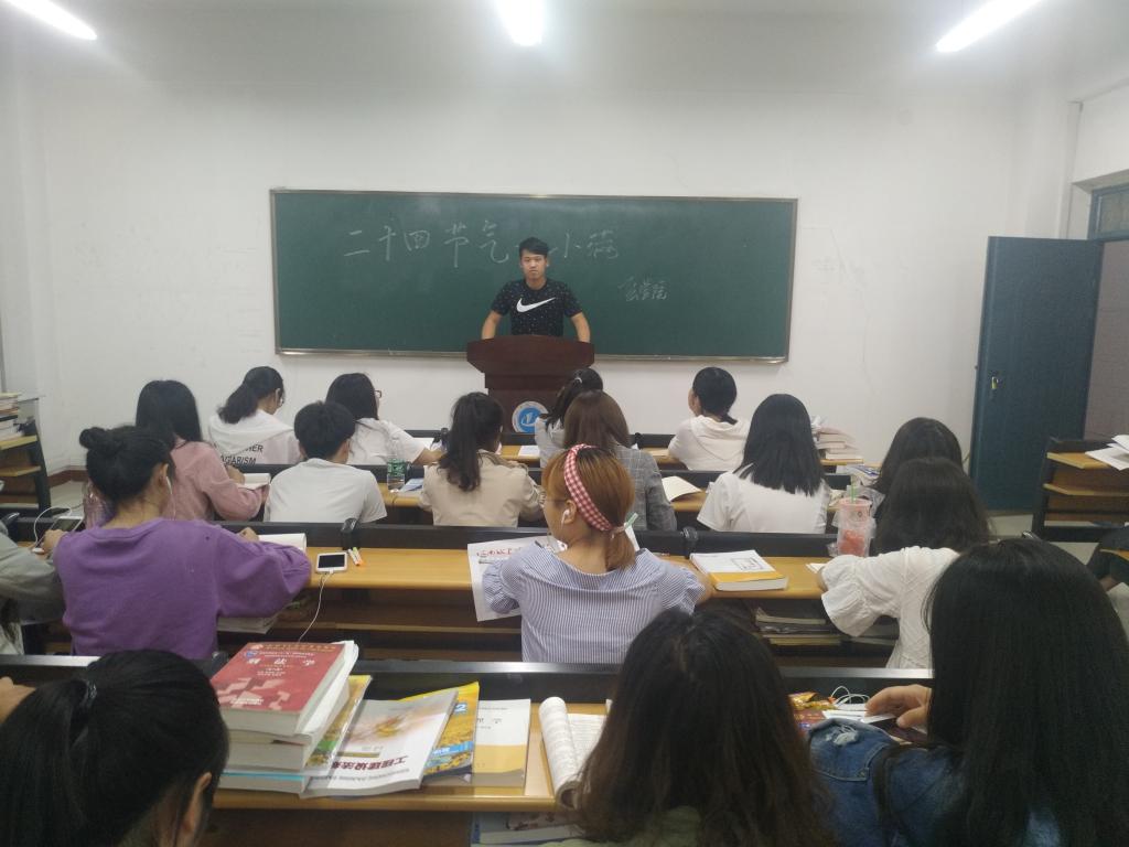 众所周知,“二十四节气”在古代对农民农业生活的重要性,通过节气来了解农业的发展。晚上7点,同学们陆续来到113教室为班会做准备,随着主持人的一声宣布,班会正式开始,同学们通过查阅搜集资料,了解和“小满”节气有关的知识。之后同学们积极同大家分享自己所了解的知识,随后同学们积极的就“小满”节气展开讨论,发表自己对该节气的见解,会场气氛十分活跃。