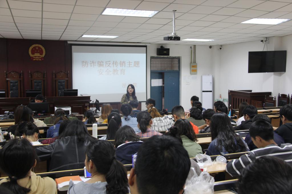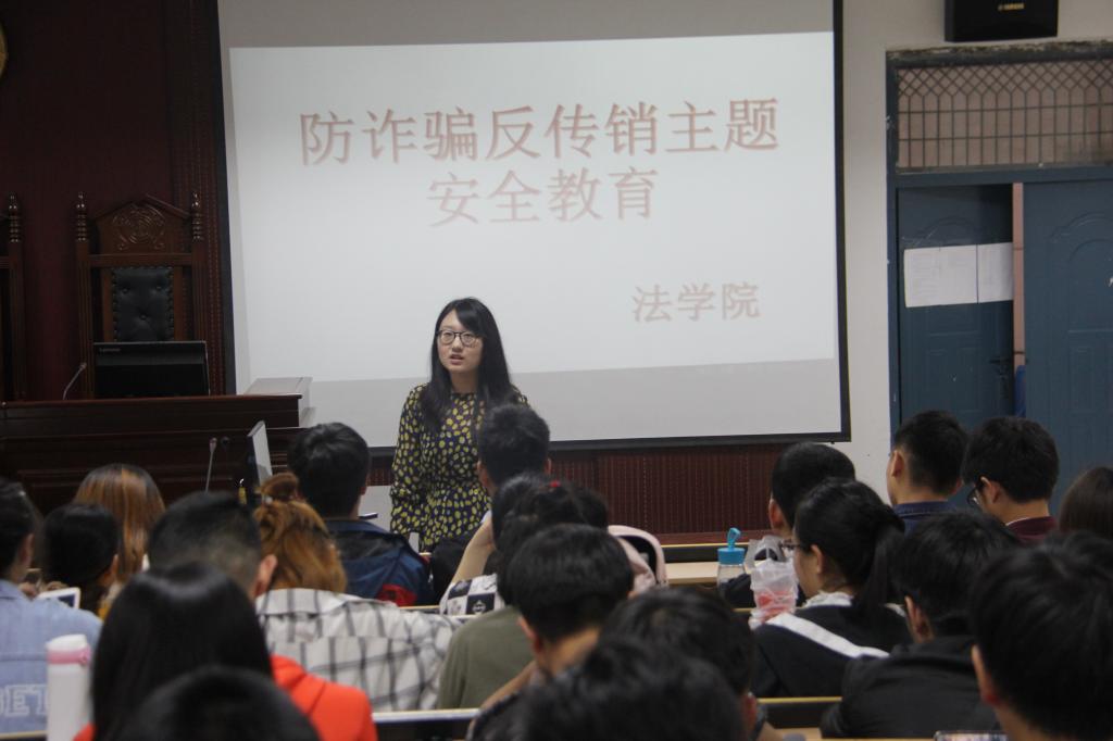 此次活动中,刘源老师首先通过放映防诈骗教育片,告诫大家要提高防骗意识,并分析了诈骗罪、组织传销活动罪的具体犯罪构成及定罪量刑情节,告诫与会师生不仅要远离传销、诈骗活动,如果发现有传销、诈骗活动要及时报警;之后通过列举具体典型案例让与会师生们对诈骗的形式和方法有了比较充分的了解,提高了师生们的对于诈骗、传销行为的认识。最后刘源老师强调:“不管诈骗手段如何花样翻新,只要我们保持清醒的头脑,不爱慕虚荣、不贪图小便宜,牵涉经济时要提高警惕,就一定能挫败诈骗分子的企图”;她提醒广大师生提高防范意识,切勿因小失大,并就如何进一步做好防诈骗、反传销的教育宣传提出建议,建议大家提高自我保护意识,不断增强同学们防范网络诈骗的意识和能力。