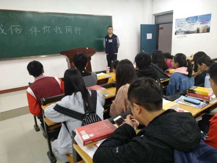 (通讯员:刘源 汪浩波)为提高大学生内在素质修养,社会道德观以及对诚信的认知,建立"言必信,行必果"的良好校园氛围,丰富同学们的课余生活 , 坚持正面宣传引导 , 弘扬社会主旋律,树立大学生诚信品质,yl6809永利官网集团大一全体同学于4月12日晚上7:00在一号教学楼113教师举办“诚信校园”的班会活动。