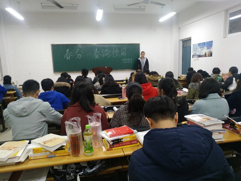 (通讯员:刘源 汪浩波)春分,又名仲春之月,二十四节气中的第四个节气,《春秋繁露;阴阳出入上下篇》中说:“春分者,阴阳相半也,故昼夜均而寒暑平。”故“分”有二指,一指这天地球直射赤道,昼夜平分;二指古时以立春至立夏为春季,春分正当春季九十天之半,平分了春季。3月21日,yl6809永利官网集团在115教室举办了“春暖花开”的春分主题班会活动。全体大一学生出席。