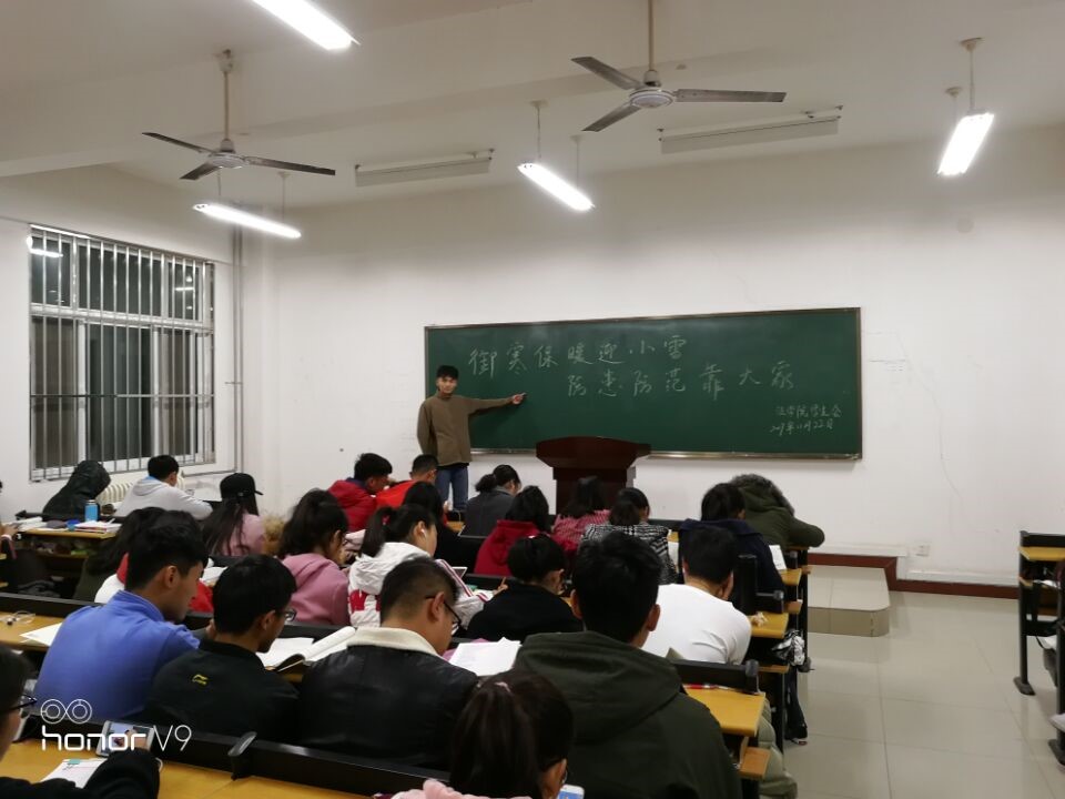 (通讯员:魏丽君 汪浩波)为贯彻落实党关于弘扬中华优秀传统文化教育的精神,落实立德树人根本任务,增加同学们对传统文化的进一步了解,加强新形势下中华优秀传统文化教育,yl6809永利官网集团于11月22日开展“御寒保暖迎小雪,防患防范靠大家”主题活动。