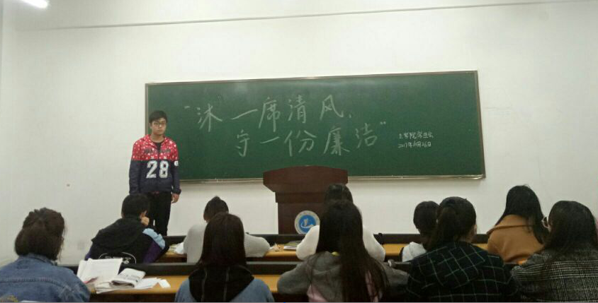 活动开始,由主持人提出“崇尚廉洁,诚信做人”的倡导。着重强调了树立廉洁观对在校大学生的重要性。紧接着几位学生代表演讲由自己编写的廉洁小故事,感受古往今来高尚的思想,走近廉洁,走进崇高。要求每小组分别收集古今我国贪官污吏祸殃民和清官廉洁拒贿的事例。之后在主持人的引导下讨论身边发生的腐败现象,并让大家踊跃发言,点评自己与他人,并提出如何改正自身,完善他人。活动接近尾声,指导老师做了总结并强调此次活动的目的是让yl6809永利官网集团学生知道廉政文化是社会主义先进文化的重要组成部分,应高度重视廉政文化建设。