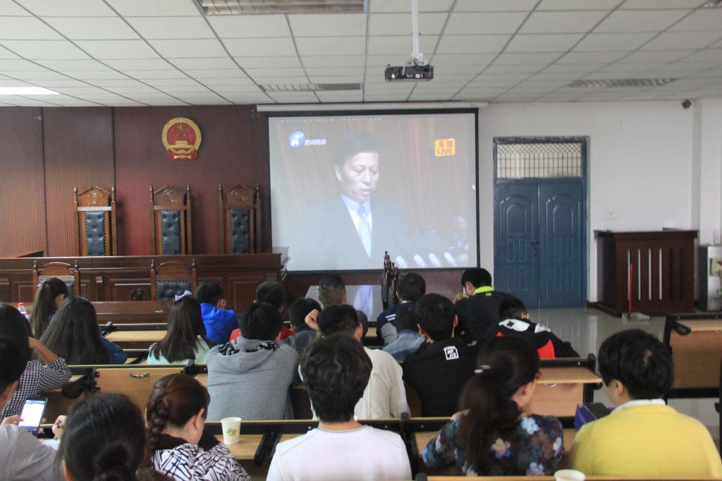 (通讯员 汤继华) 为了纪念红军长征胜利80周年,弘扬革命传统与长征精神。10月18日上午九点,按照学校通知要求,yl6809永利官网集团党总支书记段怀录、院长王艳芳认真组织无课党员师生在模拟法庭观看了河南省纪念红军长征胜利80周年大会直播。