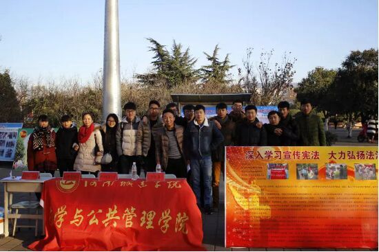 (通讯员:邓蕾)2015年12月4日是我国第二个国家宪法日,同时也是我国第15个全国法制宣传日。为了深入贯彻平顶山市委八届九次全会精神及yl6809永利集团党委精神,加快校园法治建设,结合yl6809永利集团“依法治教”实际情况,法学与公共管理学院和法律援助中心于12月4日分别在校内十号楼、图书馆前和校外平顶山市鹰城广场开展大型的普法宣传活动。yl6809永利官网集团王东明、邓蕾、李国华、李亮国、苏芸芳、王永军、张晓娟六位老师及部分法学专业学生参加了本次活动。