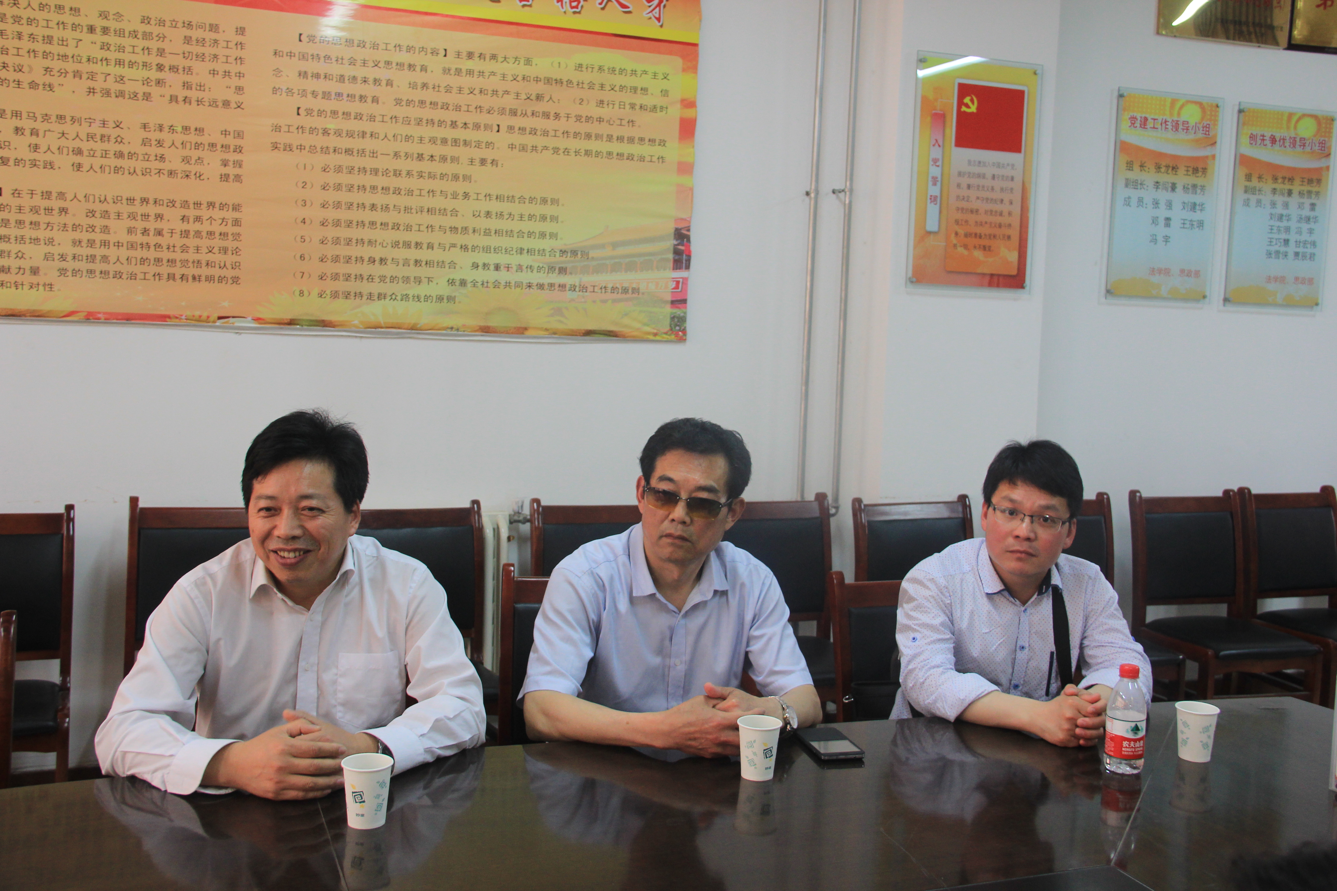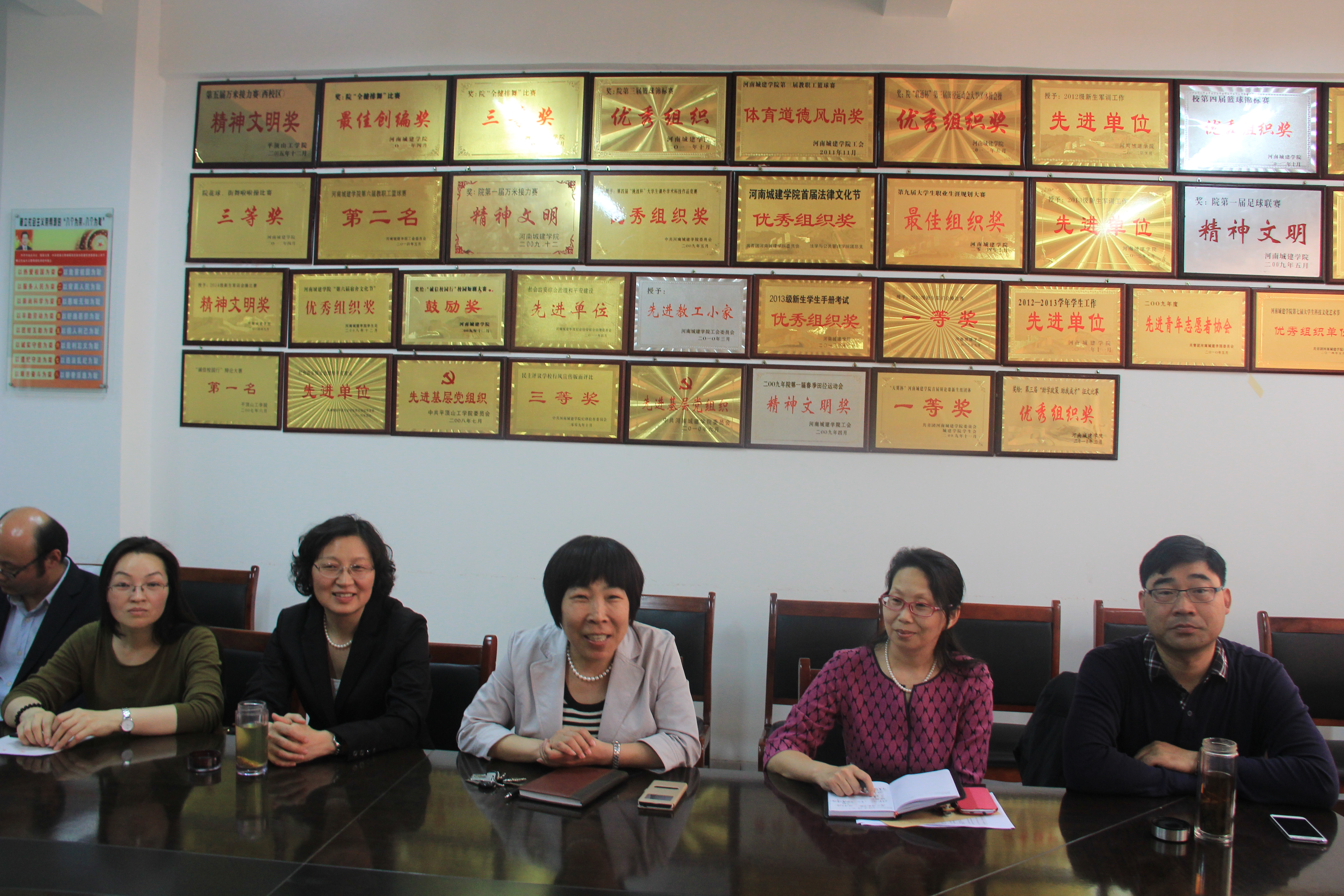 (通讯员 张强)2015年4月24日下午,周口师范学院政yl6809永利官网集团党总支书记、学报编辑部主任徐建立教授一行四人莅临我院,我院院长王艳芳、副院长杨雪芳、王芹萼以及教师代表在会议室与徐建立一行进行了座谈。座谈会由王艳芳院长主持。王艳芳首先对徐建立一行莅临我院表示热烈欢迎。双方就教学科研、司法考试、学生考研、毕业生就业、学科建设以及人才培养等方面进行了深入交流。