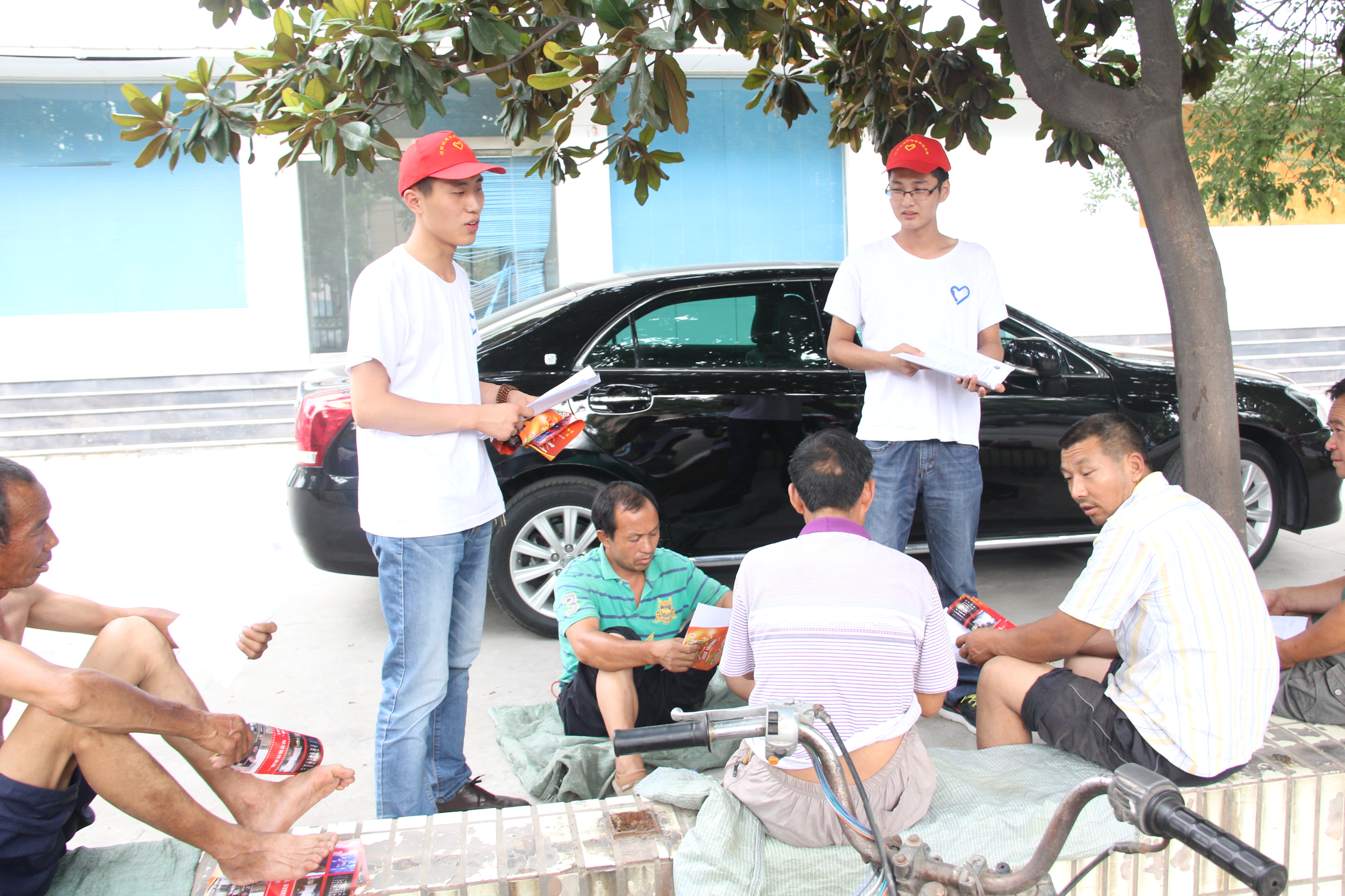 为切实加强yl6809永利官网集团人才实践能力的全面培养,2014年7月25日上午九点,法学与公共管理学院2014年“三下乡”暑期社会实践志愿者队来到平顶山市郏县体育场普法,宣扬法治精神建设法治社会。