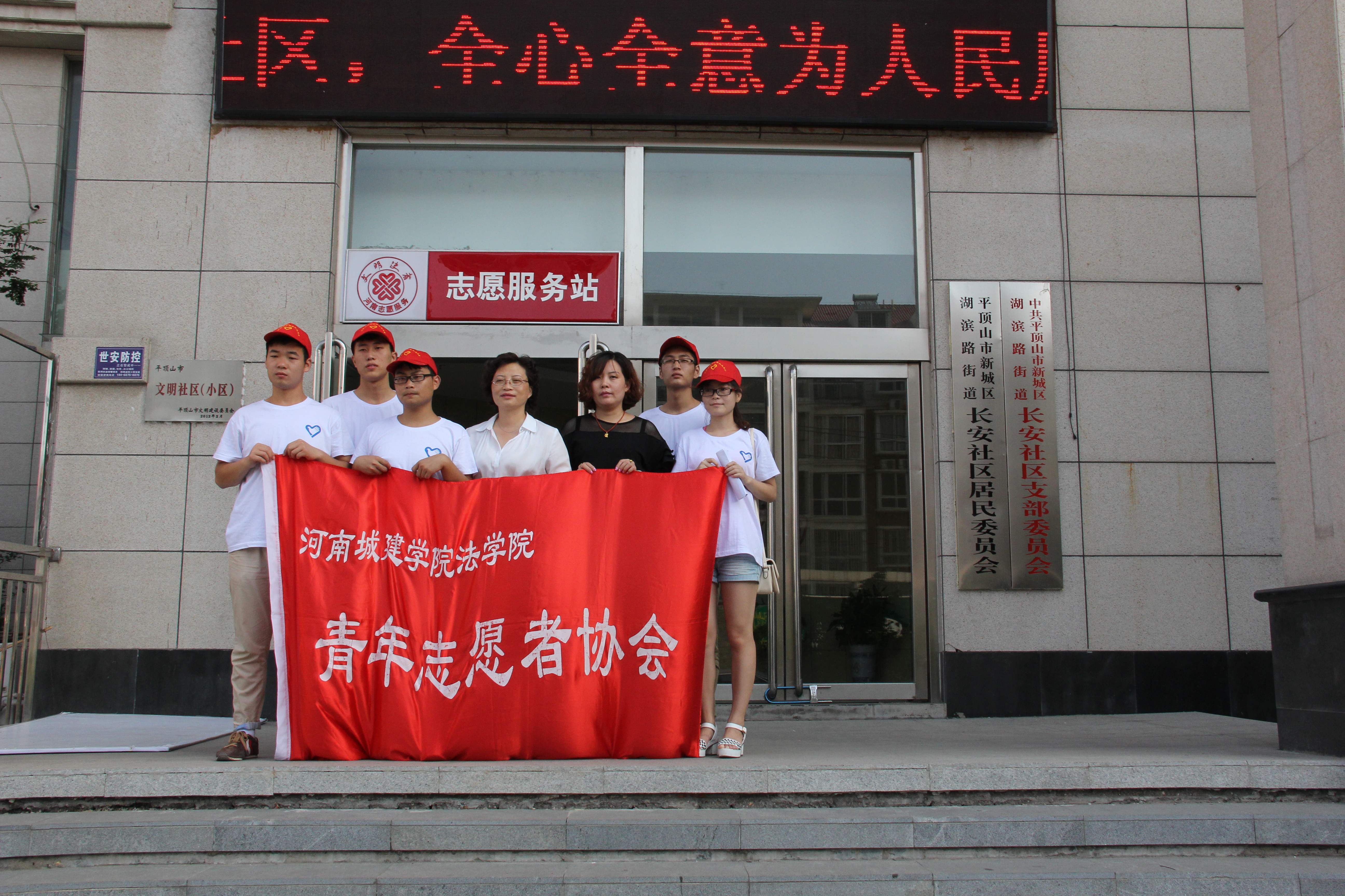 为切实加强yl6809永利官网集团人才实践能力的全面培养,2014年7月11日上午九点,法学与公共管理学院2014年“三下乡”暑期社会实践志愿者队来到平顶山市长安社区居民委员会亲身体验工作。