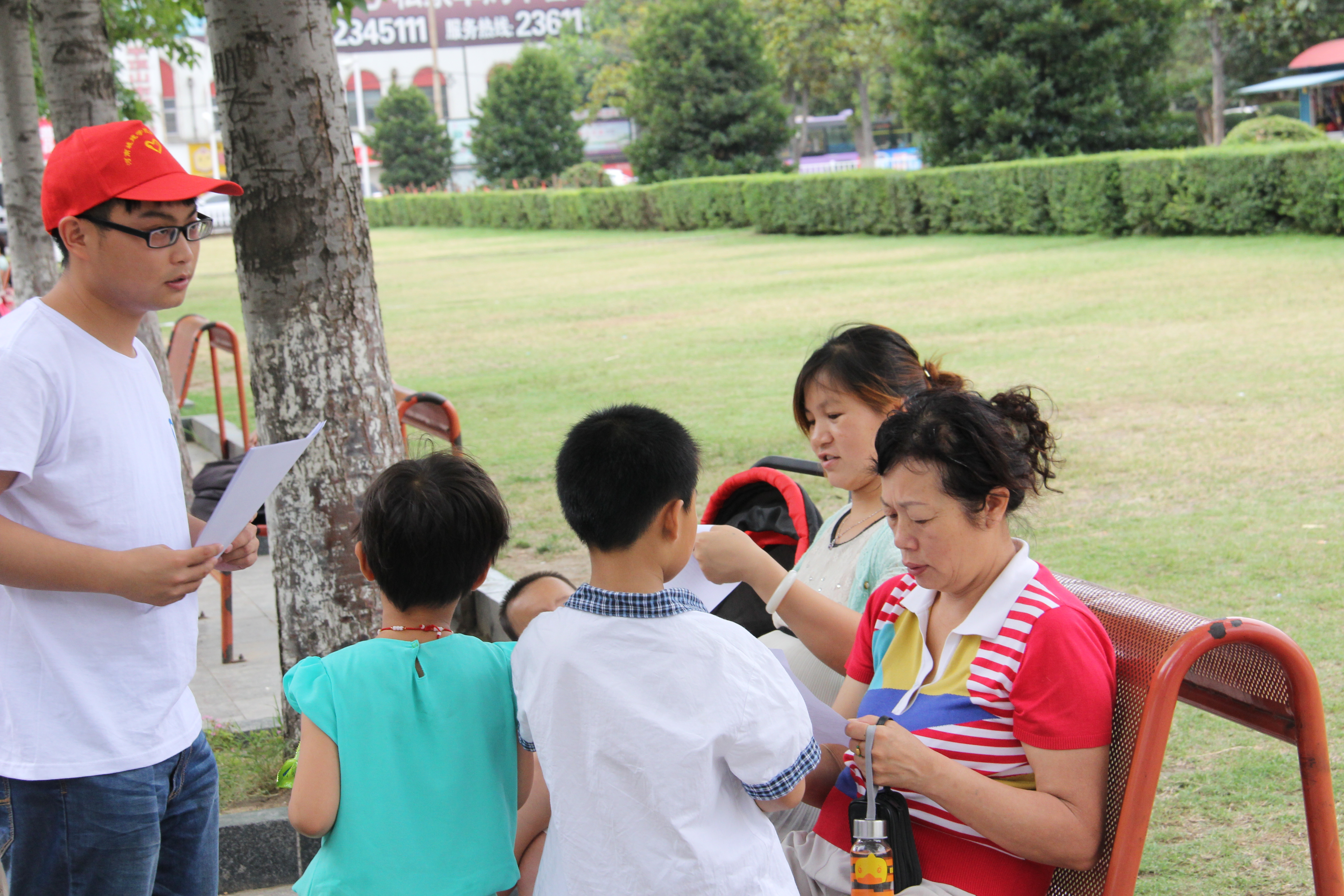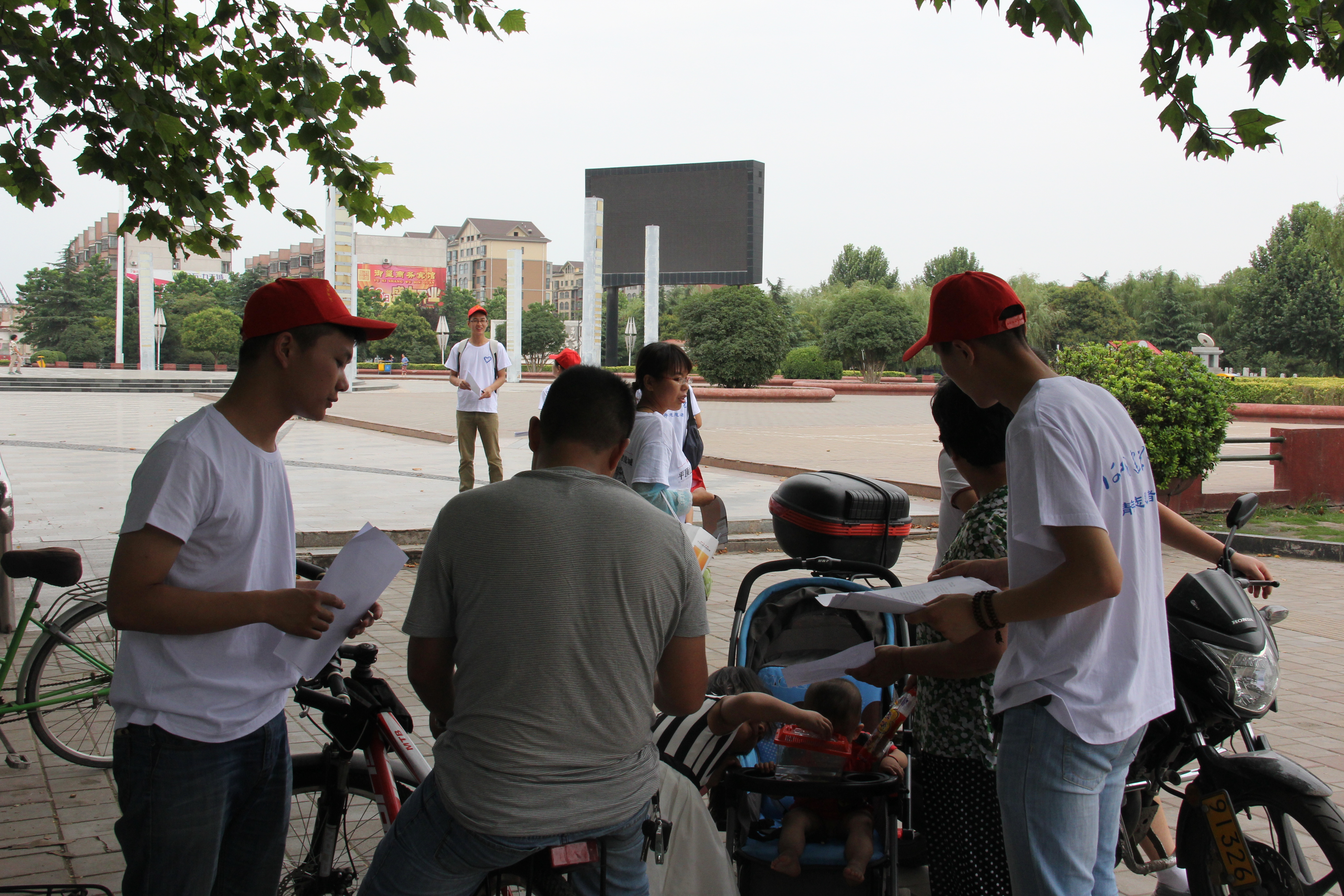 2014年7月4日上午八点,法学与公共管理学院2014年“三下乡”暑期社会实践志愿者服务队来到平顶山市鹰城广场进行义务普法活动。