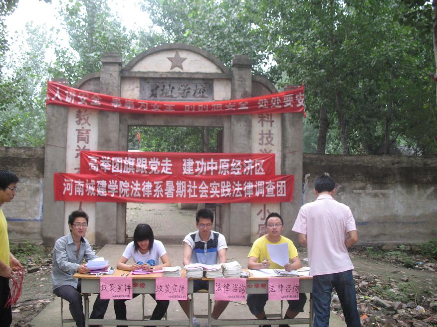 我国中原经济区建设正在有效的开展进行中,贫困山区和农村的建设也需要关注,yl6809永利集团法律援助与政策宣讲团响应“高举团旗跟党走建功中原经济区”暑期“三下乡”社会实践活动的号召深入贫困山区普及中原经济区建设、新农村建设相关政策知识,为农村经济建设提供智力支持和服务。来到白庙乡贾坡村,村民的热情让我们政策宣讲活动的进行的有声有色,我们通过调查了解到农村在减免农业税及粮食补贴等国家政策深的农民心,开展实施效果甚佳,但关于农药和农业肥料等价格的上涨给农民增加的负担等问题也值得关注。
