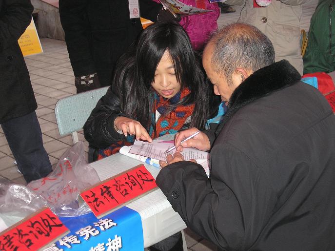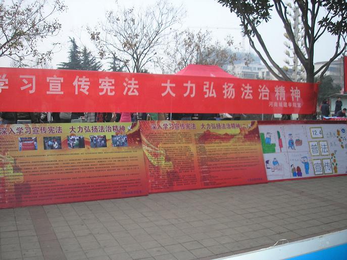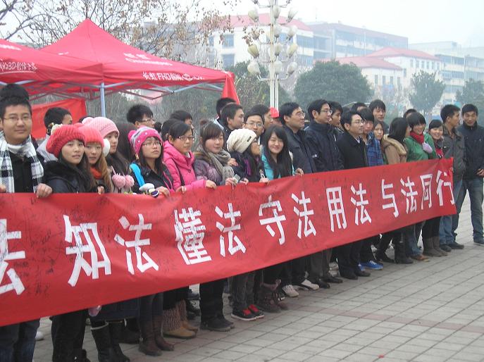 (通讯员 张强)今年的 12月4日是我国第11个全国法制宣传日。当天上午我系在市区鹰城广场、步行街及校园内同时开展了主题为“深入学习宣传宪法,大力弘扬法治精神”的法制宣传活动。我系李国华副教授和王东明博士以及百余名学生参加了此次活动。