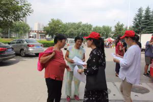 图为志愿者们分发宣传页