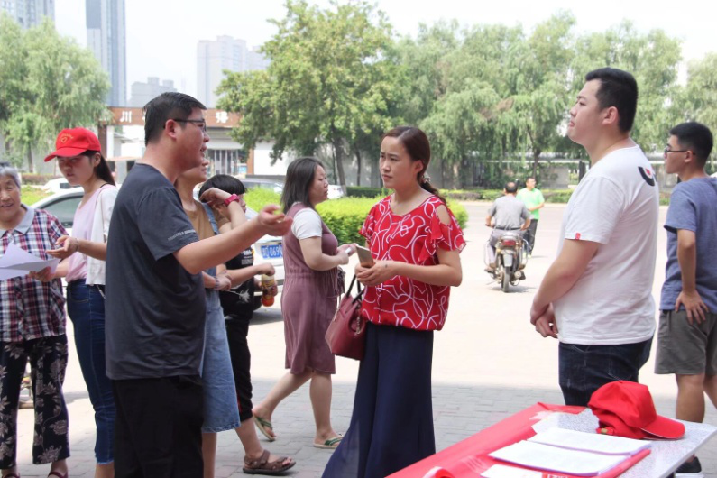 图为志愿者们积极解答居民问题