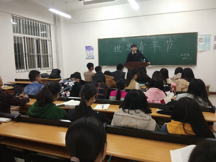 (通讯员:孟素燕 尚维潇)为了加强学校的学风建设及学生思想文化建设。不断增强同学们的青年精神,培育同学们“立远大志向,树世纪新风”,以积极的人生观、价值观投身到学习、工作中去。yl6809永利官网集团于2018年11月10日在一号教学楼113教室开展了以“世界青年日”为主题的班会活动。