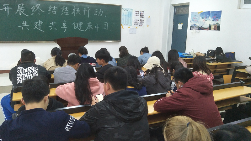 活动开始,主持人周润鹏用通俗易懂的语言说明了结核病在我国影响范围之深和结核病对病人的身体造成的伤害,同学们纷纷感到震惊不已。随后,主持人对同学们进行了随机提问,从而了解了同学们对结核病的认识程度并向同学们讲授一些防治结核病的方法,加深了同学们对结核病的认识。最后,主持人周润鹏向同学们发放了有关结核病防治知识的宣传手册,通过《结核病病防治知识手册》,带领同学们认真学习了防治结核病的相关知识,同时也要求同学们在日常的生活中要注意以下几点:一是要养成良好的卫生习惯,勤洗手,勤换衣,不随地吐痰;二是要注意健康饮食,均衡营养,每天保证充足的睡眠;三是要多加强体育锻炼,提高抵御疾病的能力。