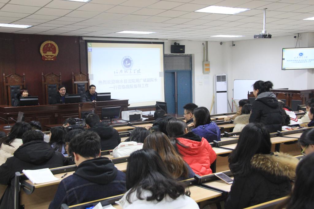 (通讯员 胡小光)2019年1月4日,江苏省响水县法院周广斌副院长一行3人,莅临我院模拟法庭就有关响水县法院基本情况、招聘安排向同学们进行现场解惑答疑。会议由王艳芳院长主持,总支副书记张强以及辅导员孟素燕、胡小光老师以及2019届毕业生参会。