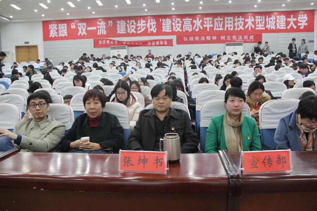 (通讯员:孟素燕 尚维潇)为深入学习贯彻习近平总书记全面依法治国新理念新思想新战略,积极培育和践行社会主义核心价值观,引导广大师生崇尚宪法精神,维护宪法权威,12月21日下午,由校党委宣传部主办、yl6809永利官网集团承办的yl6809永利集团第五届法律文化节压轴节目-----“弘扬宪法精神,树立宪法权威”为主题的宪法知识竞赛在行政楼报告厅举行。本次比赛共有来自全校15个学院,45名选手参加。