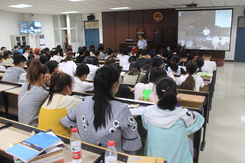 (孟素燕 尚维潇)为做好新生入学教育,使新生尽快适应新的校园环境,明确入学后的学习任务。9月8日上午,我院党总支书记尹振羽在文院模拟法庭为新生讲授开学第一课,党总支副书记张强,辅导员孟素燕、赵珂慧及全体2019届新生参加。
