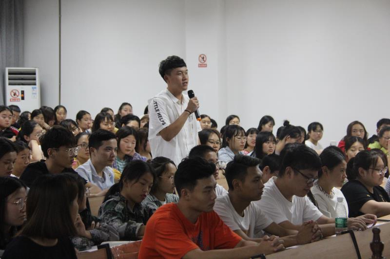 王院长以为什么选择法学专业为切入点与同学们进行了诚恳交流,然后结合自身实际,把自己的经历、对法律的思考与想法同大家进行了分享;接着王院长通过马伯里诉麦迪逊案告诫同学们作为未来的法律人务必将公平正义的理念根植于内心深处。王院长强调,要成为一名新时代合格法律人,不仅要具备坚定的政治信仰、扎实的专业知识、良好的道德素养,还要博览群书,积淀文化底蕴,培育深厚的文化素养与国家情怀。王院长从法律职业是一项神圣的、崇高的、值得尊重的职业角度,勉励与会同学一定要牢记法律人的使命与担当,牢记青春是用来奋斗的,要努力拼搏,不辱使命;另外,王院长还就大学时期的生活与学习提出了中肯的建议。在现场问答环节,王院长对同学们提出的问题一一进行了深刻的解答。报告会气氛热烈、掌声阵阵。