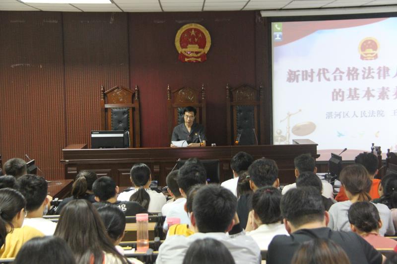 (通讯员:孟素燕 王宇)2019年9月11日晚上,湛河区人民法院王民克院长应邀来我校和谐校区模拟法庭作“新时代合格法律人应具备的基本素养”的专题报告。报告会由yl6809永利官网集团党总支副书记张强主持,学工办主任孟素燕以及大一新生为主的200余名学生参加。