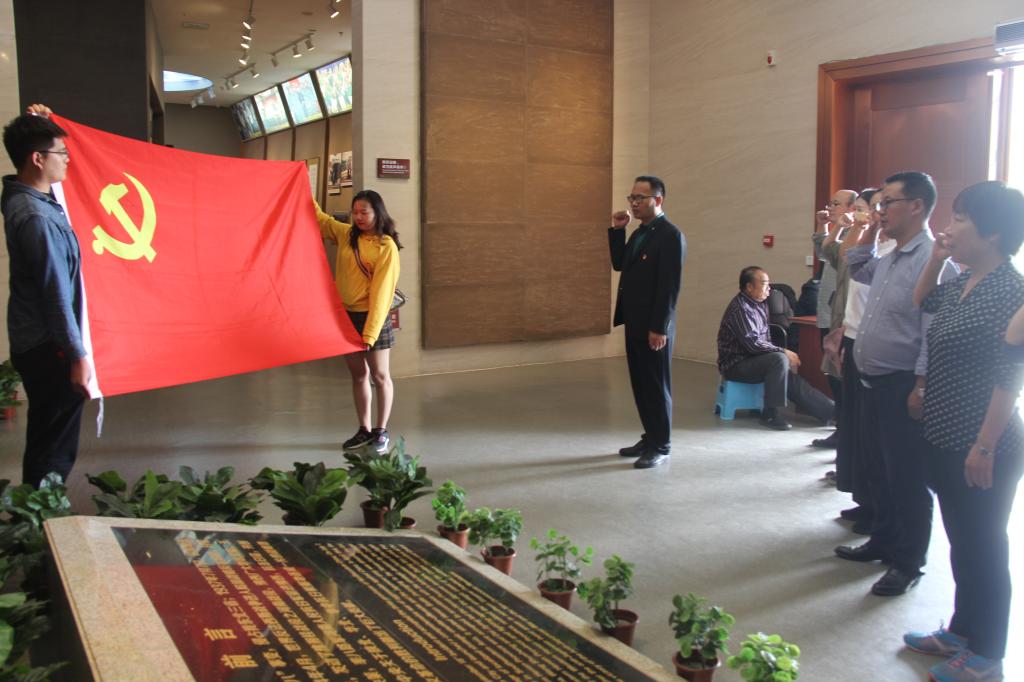 在郏县曹沟八路军豫西抗日纪念馆,yl6809永利官网集团党总支副书记张强带领大家,面向鲜红的党旗,重温了入党誓词。