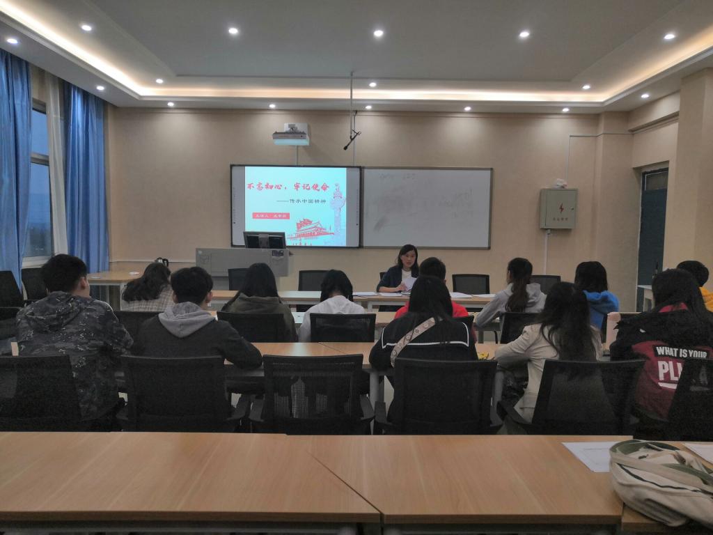 为全面落实“不忘初心、牢记使命”主题教育,加强思想理论学习。10月15日下午,我院学生第二党支部书记孟素燕在文院教学楼422教室为第二支部学生党员上“不忘初心、牢记使命——传承中国精神”主题党课。