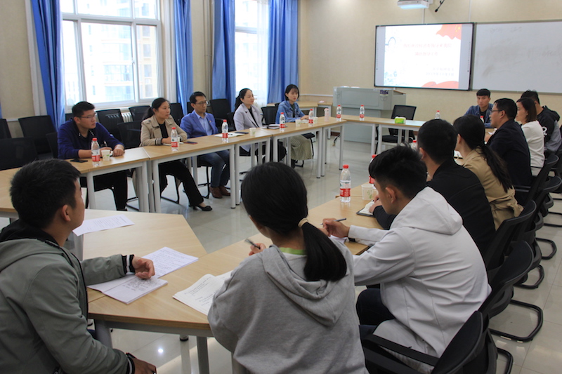 尹书记首先对校团委孙书记一行来我院调研指导工作表示热烈的欢迎,团学办副主任孟素燕就班团一体化建设、青年学习活动开展、学生会改革换届等共青团工作具体落实情况做了一一汇报。各辅导员和团学干部对于团学工作开展过程中遇到的问题和取得的比较有效的经验也做了分享和汇报。尹书记对于我院团学工作如何提高实效、进一步增强专业化和品牌化建设做了重点分析,同时感谢校团委在工作开展过程中对我院的指导与帮助。
