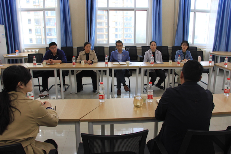 (通讯员:孟素燕 高传友)11月1日,校团委书记孙方行、副书记张金俊、腾飞,团委社团部长苗清、宣传部副部长柴洁一行来我院就共青团工作进行调研。我院党总支书记尹振羽,团学办副主任孟素燕,辅导员赵珂慧、刘宏伟和学生会干部、主要团支部干部参加了调研座谈会,座谈会在文院教学楼422会议室召开。