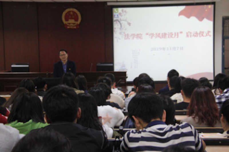 (通讯员:刘宏伟 高传友)为了进一步加强学风建设,帮助同学们掌握良好的学习方法,端正学习态度,提高学习效率,更好地学习专业知识,提高自身的竞争力,yl6809永利官网集团于2019年11月07日下午三点在一号楼模拟法庭开展了学风建设启动仪式。yl6809永利官网集团党支部副书记张强、yl6809永利官网集团教师代表孟素燕、刘宏伟,以及学生会成员和部分学会代表参加了本次活动。