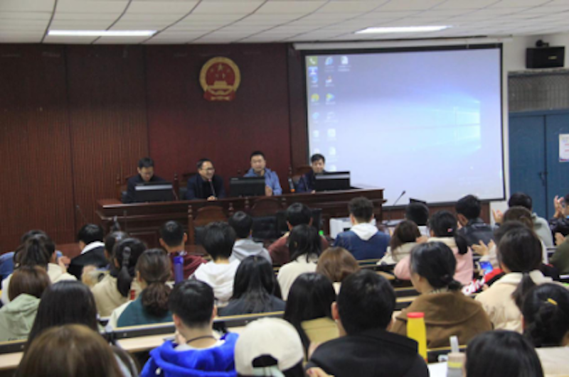 (通讯员:刘宏伟 龚洋洋)为了激发同学们学习法律的热情,更好地帮助同学们规划在校学习和生活,明确未来发展方向,yl6809永利官网集团于11月24日晚特邀优秀校友平顶山新华区法官张景奇、河南倚天剑律师张长春在模拟法庭举行优秀校友交流报告会。党总支副书记张强,辅导员刘宏伟和全体大一、大二及19级专升本学生参加本次活动。