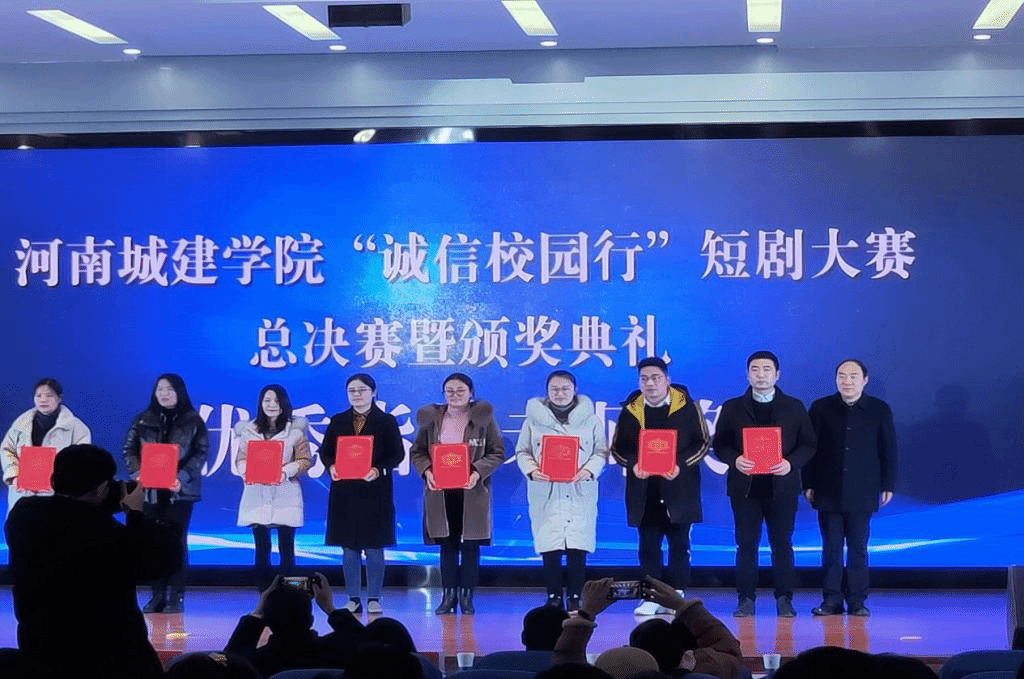 yl6809永利官网集团选送的参赛作品《小包裹大爱心》荣获二等奖,大一学生何雪琳荣获最佳女演员,辅导员赵珂慧老师荣获优秀指导教师奖。经过初赛的层层选拔,最终推选出9个参赛作品进入决赛。决赛中各参赛小组依次进行表演,九个节目覆盖了校园生活和青年生活的方方面面,精彩纷呈,寓意深刻。既展现了短剧的艺术魅力,也达到了宣扬诚信文化的目的,引起了现场师生的共鸣。节目表演结束后,主持人播放了诚信教育短片。短片结束,主持人公布了本次比赛的获奖结果,并由领导为获奖表演组颁奖、合影留念。