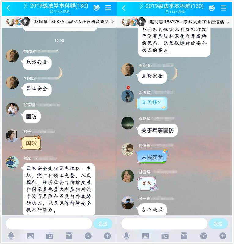2020年4月15日是我国第五个“全民国家安全教育日”,在疫情防控的特殊时期,国家安全更是重中之重。赵珂慧老师用一个短片引出话题,围绕国家安全的多个方面和同学们展开讨论,深入浅出向同学们宣传普及了国家安全知识,强调了国家安全意识的重要性,让同学们对国家安全有更深刻的了解并树立保护国家安全的责任感。