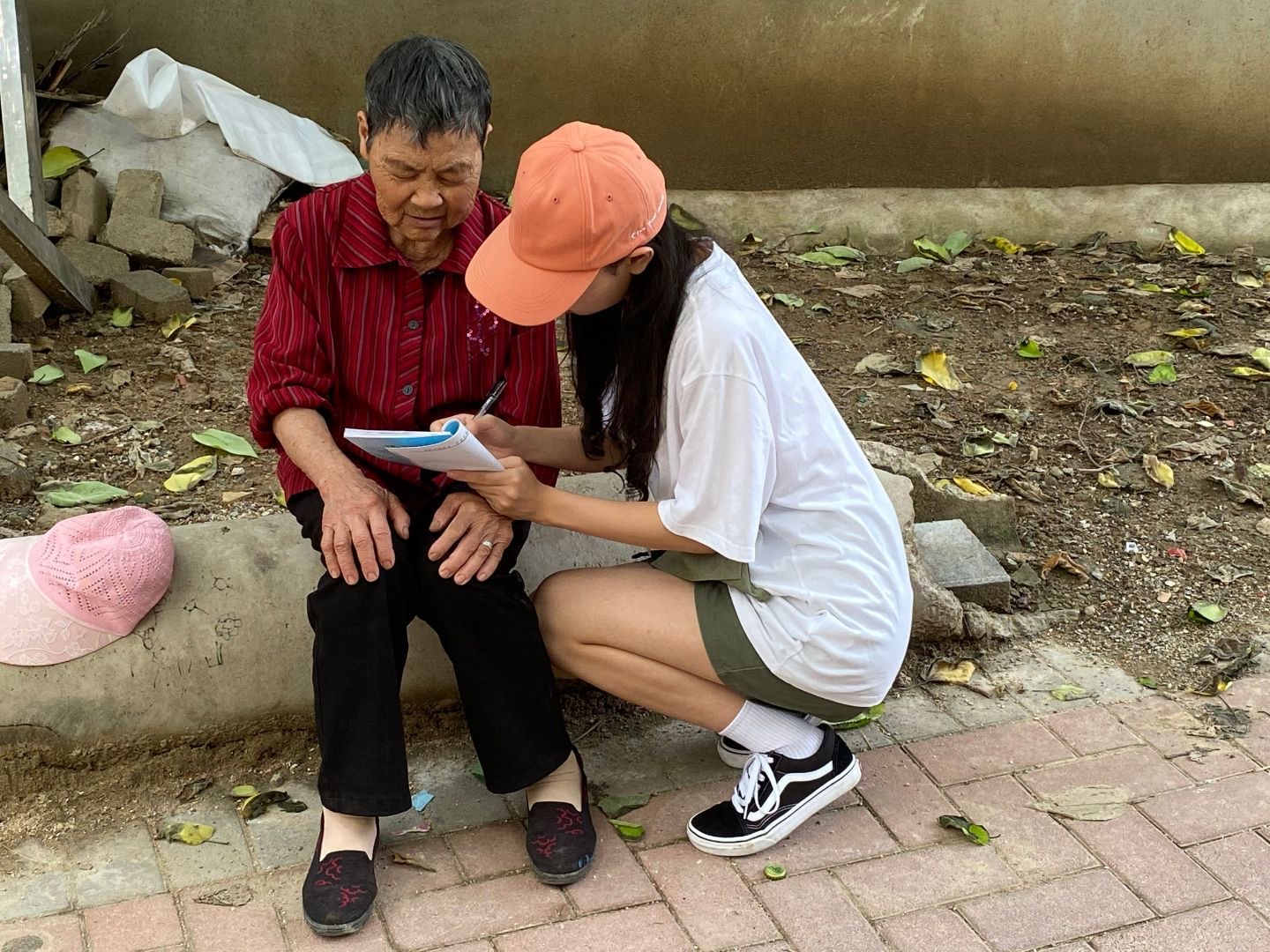 图为团队成员吕宣宣向村民采访