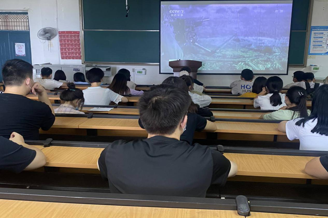 活动伊始,主持人首先带领同学们重温了中华儿女艰苦卓绝的英勇抗日历程。紧接着,全体同学观看了“九一八事变”纪录片,瞻仰了中国人民英勇卓绝的英雄事迹,深刻领会了“落后就要挨打”的道理。然后,学生代表发表了个人观看的感受和体会。主持人对同学们的发言进行了总结,并告诫同学们要勿忘国耻,勤奋学习,用实际行动为中华民族的强大作出个人贡献。最后,同学们观看了爱国电影《我和我的祖国》,爱国情怀在观看过程中得到了进一步升华。