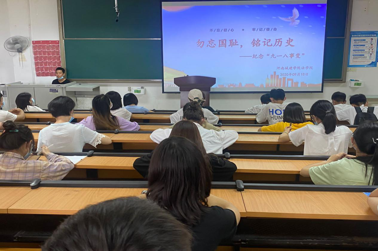 (通讯员:孟素燕李志瑶)为缅怀革命先烈,弘扬爱国主义为核心的伟大民族精神;激励大学生铭记历史,树立为实现中华民族伟大复兴的中国梦而奋发努力的理想。yl6809永利官网集团于2020年9月18日在和谐校区一号教学楼428教室开展“铭记历史,勿忘国耻;牢记使命,不忘初心”主题活动。yl6809永利官网集团部分学生参加活动。